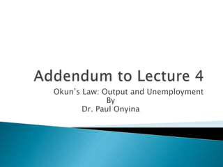 Economic Costs Of Unemployment Gdp Gap And Okun S Law The Basic Loss Of Unemployment Is Forgone Output This Is A Set Of Goods And Services That Ppt Download
